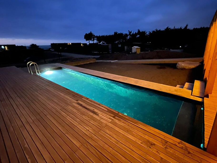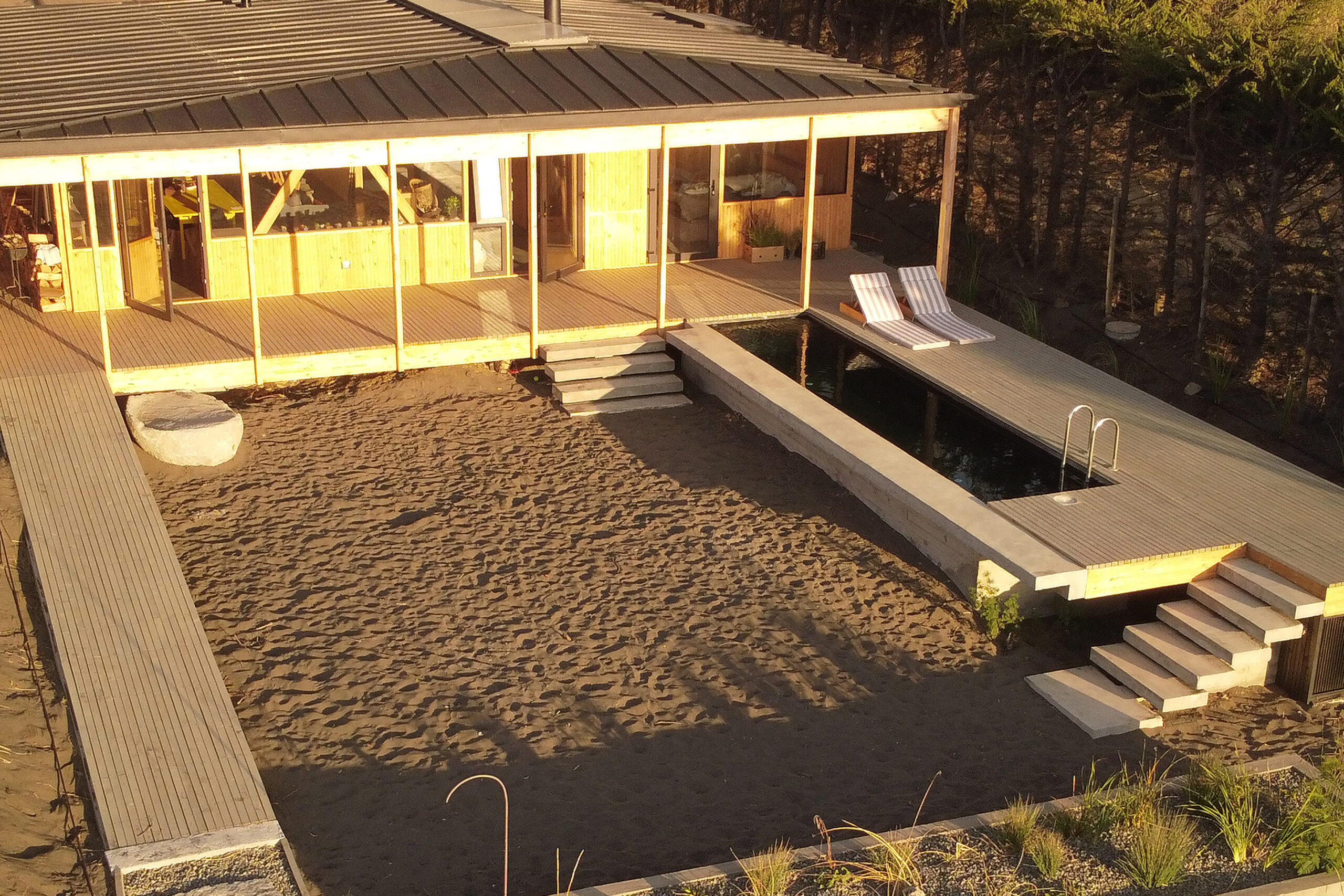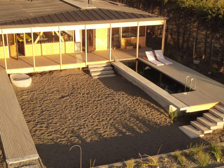 El diseño contempló además un carril de nado de 7 metros de largo por 1,7 metros de ancho, pensado para quienes buscan una experiencia activa dentro de un entorno natural y armónico.